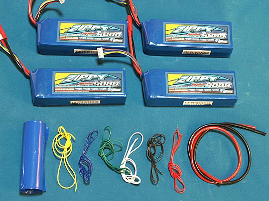 廉価なLiPoを組み合わせて18.5V 8000mAの バッテリーを製作しました 現在廉価なLiPoは入手が手軽です しかし容量の少ないのが空撮等には不便です そこで並列につないで倍の容量を得ることにしました 左の写真が使用した材料です |