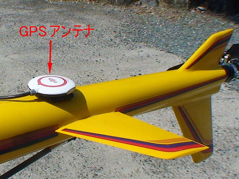 GPSアンテナはテール近くのボディーの上にアタッチメントと両面テープ で固定しています ボディー内に取り付けても良いのですがLEDの表示 を確認するためにはこの位置がよさそうです |